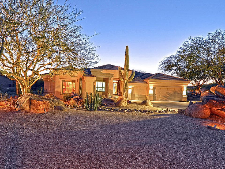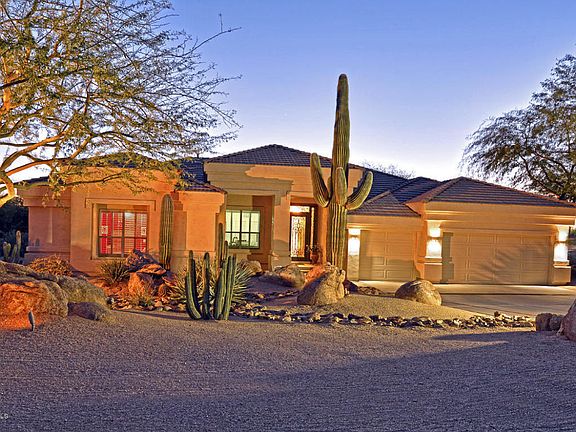 Elegant yet warm on one of Monterra's best lots. The North Scottsdale setting is lovely and tranquil. The ''island'' home sits surrounded by lush natural open space that provides an ideal backdrop to our desert sunsets. Enter into a grand formal space with views across the pool to the desert. The living area is bright and open with view windows from the sharp well-appointed island kitchen to the family room with its dramatic stone fireplace. The master suite is generous with views to the green lawns. The master bath provides a wonderful couples' layout and an exercise area. The supporting bedrooms and baths give the ultimate in flexibility. Outside is a deep covered patio, outdoor kitchen, kiva fireplace on a sunning deck, towering trees and a striking waterfall-accented lagoon pool.