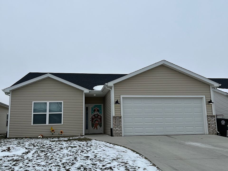 Newer house built in 2022! Ranch style equipped with a 2 car garage! House features LED lighting, cement back porch area, energy efficient! Lawn care provided included in rent price! Smoke free unit. Tenant is responsible for all utilities: gas, electric, and water/trash.