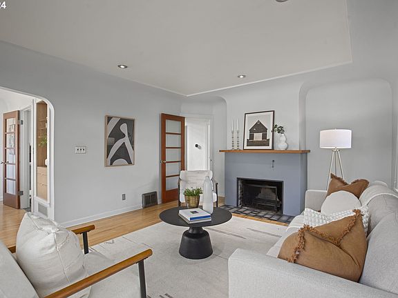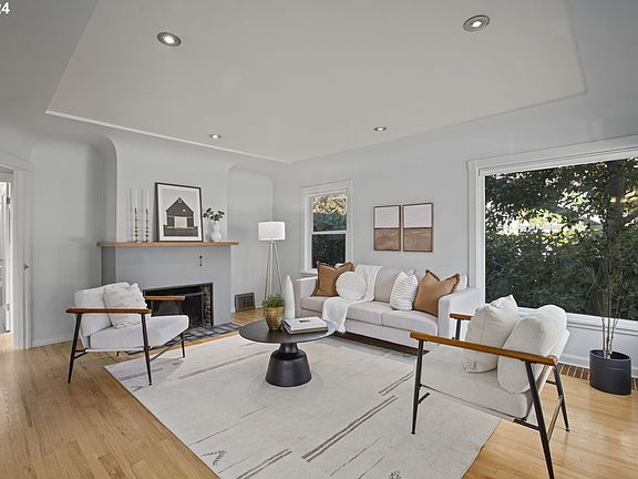 OPEN HOUSE 11/17, 1-3pm. Step into this delightful 3 bedroom, 2.5 bathroom, Modern Tudor. Radiating warmth and sophistication, this home welcomes you with a cozy wood-burning fireplace and beautiful rich, red oak hardwood floors. The stylish euro-style kitchen showcases custom cabinets, marmoleum floors, and an eat-in bar, perfect for casual dining. The spacious main level also includes one bedroom and a versatile den/office, creating space for everyone. You’ll be thankful for all the natural light that floods into the home, filtering through strategically placed skylights that illuminate the upstairs, where you’ll find two generously-sized bedrooms with ample closets and a full bath featuring an oversized tiled shower. The finished basement boasts tall ceilings and a family room/flex space, whatever suits your needs, complete with its own fireplace and half bath (no sink). Step outside to a fully fenced yard, perfect for gatherings shaded by beautiful, mature trees. Additional highlights include a long driveway for ample parking, an oversized detached garage or workshop for all your hobbies. Located just minutes from the University of Portland and Adidas, with 35 acres of Columbia Park at the end of the block—featuring soccer fields, a splash pad, tennis, volleyball, and pickleball courts, trails, picnic areas, and playgrounds. A true gem ready to be loved by its new owner. Bike Score 97, Walk Score 72. [Home Energy Score = 3. HES Report at https://rpt.greenbuildingregistry.com/hes/OR10122686]