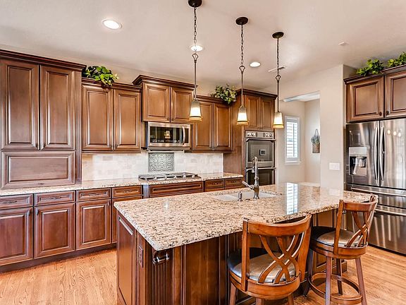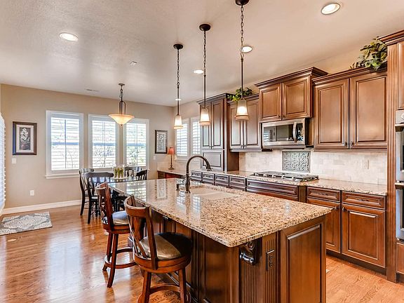 You must see it to believe it! Amazing 5 bedroom, 5 bath ranch style home with finished walk-out basement. Enjoy relaxing on your low maintenance deck overlooking the gorgeous open space with tall pines and mountain views. The end of cul-de-sac lot is your own piece of paradise*Professionally landscaped*gorgeous rock terracing*boulders*evergreen trees*stone pathways*large sodded area. Dream kitchen*custom cabinetry*granite countertops*designer backsplash*5 burner gas cooktop*butlers pantry*under counter lighting*planning desk*walk in pantry*double ovens*butlers pantry. Finished walkout basement features a large rec room complete with wet bar*wine frig*dishwasher*3 additional bedrooms*2 bathrooms*lower level laundry hooks ups*custom shop perfect for your weekend hobbies and projects. Better than new! This home checks all the boxes*Cherry Creek Schools*Amazing Lot*Plantation Shutters*Hardwood Floors*Quiet Cool Whole House Fan*Mud Room*Designer Tile*Covered Patio*Custom Fireplace*