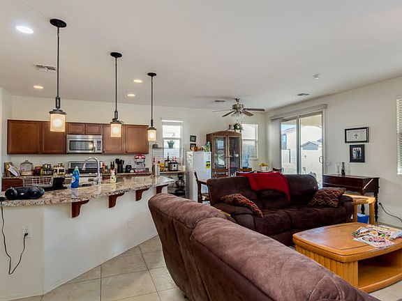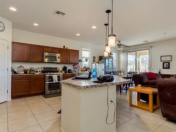 Full Landscaping including 3 citrus trees in back yard. epoxy garage floor and storage units and work bench. Iron security screen front door. nine foot ceiling. SRP certified House. 5 ceiling fans Gas stove full pantry in kitchen dish washer water softener in garage. Full extended Patio in back of house. This house stays cool even in the heat of the summer.
