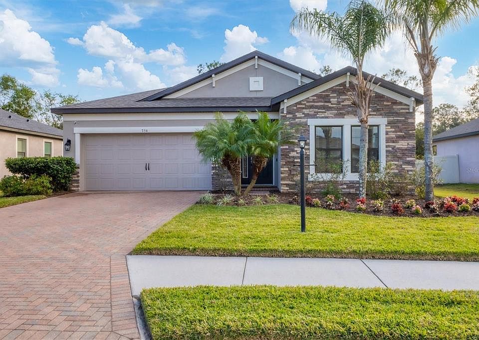 Welcome to this lovely home in the desirable Brookside Estates! This three-bedroom home is meticulously maintained and move in ready. It features a BRAND-NEW ROOF and FRESHLY PAINTED EXTERIOR! The open and airy floor plan provides plenty of NATURAL LIGHT and a spacious feel. Each area of the home flows beautifully to the next and throughout the main areas, you'll find stunning engineered hardwood flooring. The nicely laid-out kitchen is the heart of the home with a large island, 42" cabinets, and an over-sized pantry. It is open to the main living area and has a view of the PRIVATE BACK YARD. The primary bedroom has a beautiful feature wall, large windows, and a WALK-IN CLOSET. The ensuite primary bathroom offers everything that you could need including dual sinks, a garden tub and an oversized shower. The home has a split plan for privacy and the two additional bedrooms and the guest bathroom are generously sized and comfortable. The under-roof lanai is the perfect place to relax and enjoy the peaceful and private back yard. There is plenty of room to add a swimming pool! Brookside Estates has NO CDD fees and LOW HOA fees. Additionally, the home was built by M/I Homes, which is known for building ENERGY EFFICIENT and SUSTAINABLE homes. It is set in a prime location with convenient access to schools, shopping, many dining options, and to I-75. It is only a short drive to Lakewood Ranch and the UTC Mall. The St. Petersburg, Sarasota, and Tampa airports are all close by and so are many of the most beautiful beaches in the country.