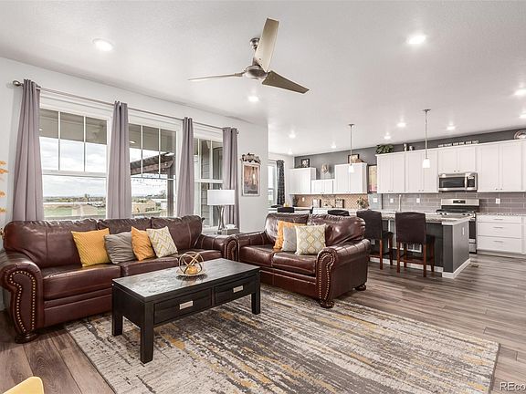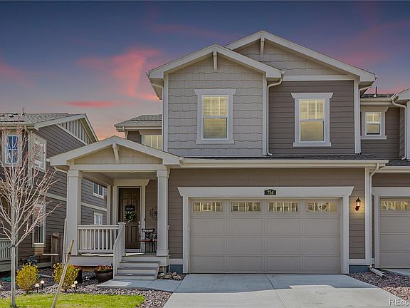 Welcome to this beautiful two-story PAIRED HOME, built in 2022, nestled in the scenic area (views to Pikes Peak from the backyard!) and new neighborhood of Palisade Park. This residence has a low-maintenance front yard, an inviting front porch, and a convenient two-car garage, ensuring a blend of aesthetics and functionality. As you step inside, the home immediately impresses with its stylish luxury vinyl plank flooring that extends throughout the main living areas. Modern recessed lighting complements the flooring and creates a warm and welcoming ambiance. The heart of the home is the large great room, perfect for gatherings. The lovely kitchen is a chef's delight, boasting pristine white cabinetry, sleek granite counter, and a stylish tile backsplash. Stainless steel appliances and a generous center island with a breakfast bar make cooking and entertaining a breeze. A handy pantry provides ample storage space. The main bedroom is a tranquil retreat featuring a private bathroom with dual sinks and a walk-in closet, offering ample space and privacy. Upstairs, a carpeted loft offers a flexible space, ideal as an entertainment area or a casual lounge in additional to two additional bedrooms. Venture downstairs to the finished basement, where you'll find a family room perfect for movie nights, a wet bar for entertaining, an additional bedroom, and an extra bathroom, adding layers of functionality to this impressive home. Outside, the backyard is a true oasis, designed for relaxation and enjoyment. It features a brand new patio with a large a sitting area under a pergola, a gas fire pit, and serene views of the neighborhood and distant mountains. This fantastic home backs up to an open space and has easy access to I-25. Don't miss out on this incredible opportunity to make this home your own! ***BACK ON THE MARKET... the previous buyer's financing fell through.