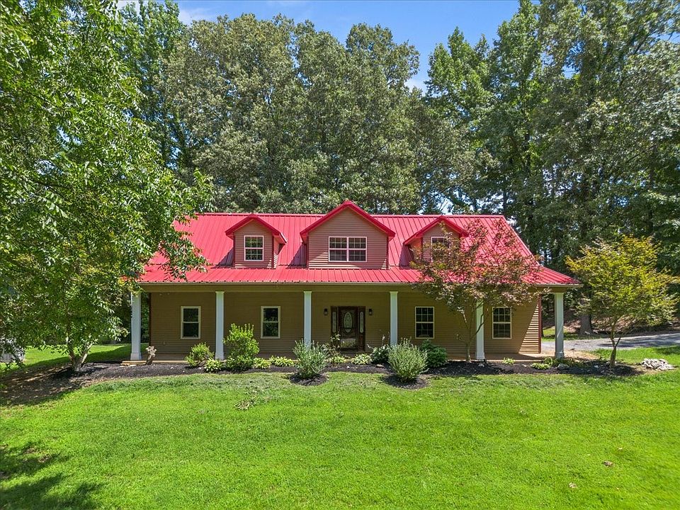 Seller concessions of $1500 to buyer & 1 year home warranty (Old Republic) of $855 upon acceptable offer. Rustic country charm, neutral color schemes and modern finishes. Lasting strength and durability with upgraded steel framing. Southern-style full length front porch offers rocking-chair relaxation space. Open foyer with soaring ceilings and natural light from the vast transom window. Formal dining room for elegant dinners or a private home office. Rear deck off the kitchen for grilling and entertaining. New paint and flooring throughout for move-in ready accommodations. Warm and comfortable kitchen with granite countertops, work island/breakfast bar with prep sink, stainless appliances & walk-in chef's pantry. Open concept combination living room. Massive master bedroom with custom closet & en suite bath on the main level. Situated on over an acre with a bonus 1500 sq ft shop. Located on a quiet cul-de-sac in the country but with city convenience.