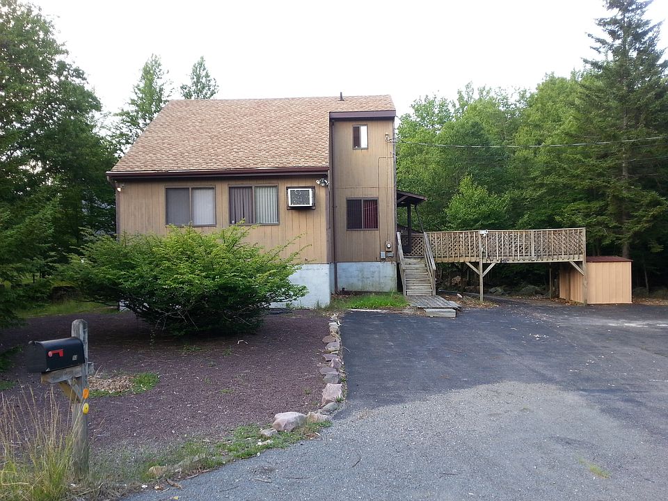 2 bed, 2 bath, , STEEL REFRIGARATOR, TOP OF LINE STOVE, STACKED WHIRLPOOL WASHER, DRYER all appliances 12 years old, PAVED DRIVEWAY, hardwood flooring in kitchen, beautiful rugs 22 years bedroom rug, 12 years living room rugs , cozy living room with vaulted ceilings, comfortable two level home in Poconos with deck , kitchen, car parking, quiet peaceful wooded grounds, yard spans both left and right, large deck facing beautiful grounds, great neighborhood, good schools, access to included pools, ice skating rink, yoga, fitness programs and much more. Only a short drive to Wallmart, Shopright, Casino, and newly arriving worlds largest water park, Access to all major highways and about 1 hour 45 minutes to New York. Fast I-80 to New Jersey, 360 to Scranton. No realtor fees, must fill out application, income verification and quick credit check. Available immediately. For immediate showings, please call Rich at 570-236-1644