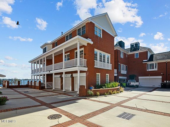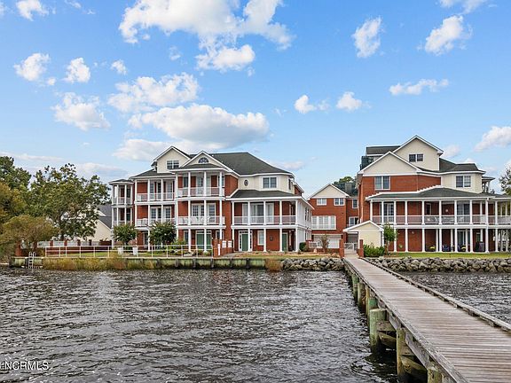 Incredible Opportunity to own a waterfront townhome at the Queens Point community in Downtown New Bern Historic District! Deeded Boat Slip C 20ft X 50ft 8-003-A-00C included in sale of property. Boat slip has a Tide Tamer boat lift in place. This three level townhome offers views of the Neuse River from every room! Enter the first floor large foyer area from the three bay garage or the front door. First floor offers an optional usage room with additional exterior door great for a home office/den/extra bedroom. Second level offers two living spaces with optional usage of each space based on new owners design. Both living areas offer access to the expansive wrap around covered porch overlooking the river. Kitchen is located in between these spaces offering abundant cabinetry, tile backsplash and granite counter top space for meal prep and entertaining. Kitchen island has gas cooktop. Cabinetry, wet bar and more counter space wrap into back living space. Kitchen sink has ''instant hot water'' feature. Family room is adorned with a FP fitted w/gas logs, wall of built in bookshelves, cabinets for more storage and TV shelf. Bose speakers convey with home. Each of the living spaces offers an area for a formal dining area and/or breakfast nook area depending on desires. Third level includes a beautiful guest bedroom with en suite, trey ceiling and good closet space. Master Suite includes a FP w/gas logs, additional vanity, large walk in closet with plenty of hanging space, shoe racks, fitted with custom built in dressers, loads of drawers including jewelry drawers. Master suite includes a large private bathroom with double sinks, beautiful tile walk in shower and large jetted tub. Large hall linen closet. Laundry rooms is located on third level including cabinets for storage and a utility sink. Recessed lighting and ceiling fans throughout home. Elevator serves all three levels of home. Downtown New Bern living in a beautiful 13 unit townhome community.