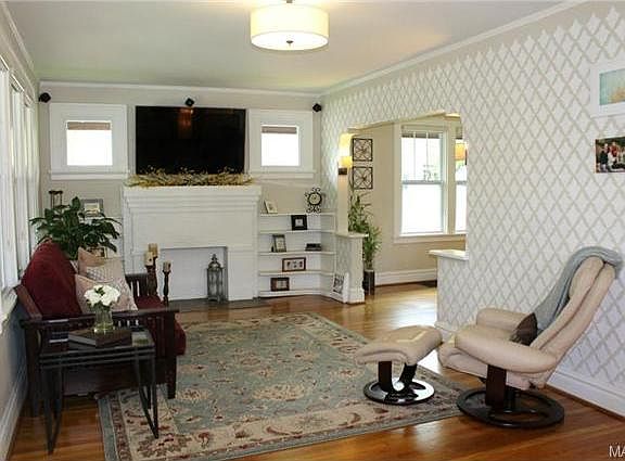 Stylish Webster Craftsman w/4 well appointed bedrms & 2 full baths blends crisp & clean contemporary lines into this 1930's classic brick home. Features include -an inviting & spacious LR w/natural light, built-in bookshelves & FP -DR perfect for entertaining -Kitchen boasts modern wood panel cabinetry, white solid surface counters, island, SS appliances w/built-in oven & microwave, gas stove-top & pantry w/slide-out shelving -Full MnFlr Bath w/sleek modern white vanity,white subway tiled tub/shower & tiled floors. Enter 2nd flr thru dramatic light-filled staircase leading to vaulted space including an office nook -Large bedrm w/added custom closet by St. Louis Closet Co. -Darling 4th bed -Another sleek modern full bath round out the 2nd flr. Features: gleaming hardwood floors, new designer carpeting 2nd floor, new vinyl windows, front/rear covered porches, newer 1-car garage, designer lighting, zoned HVAC w/high eff. furnace, new 200 amp elect. panel. Walk to parks/schools/restaurants