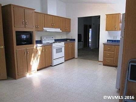 Well maintained home, tape and textured walls, enclosed double garage with work area, rear patio and yard that is fenced. The kitchen is large offering an eating area as well. Lots of window for light and a ceiling fan in LR.