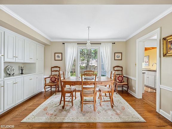 Lifestyle and location are both yours in this lovely updated ranch in the coveted Northmoor Neighborhood of East Lake Forest. Located just two blocks from South Park and the Robert McClory Bike Path, this home is a quick walk or drive to downtown Lake Forest. Upon entering the home, you'll be delighted by the gleaming hardwood floors and light and bright living room anchored by the first of two gas fireplaces. The adjacent dining room includes a large picture window overlooking the backyard as well as built-in custom cabinetry offering ample storage. Enjoy gathering in the spacious chef's kitchen with new high-end Bertazzoni and Bosch stainless appliances, granite countertops, a large center island with a breakfast bar, a pantry, and a second gas fireplace. Then escape to the primary suite, a perfect place to relax which includes vaulted ceilings, custom closets and its own set of sliding glass doors. This home has an ideal split floorplan with two spacious bedrooms sharing a full bath on the left side while the primary suite is located on the right offering extra privacy. The updated basement includes approx. 300 sq. ft. of flexible space with floor-to-ceiling storage and a laundry area with a granite-topped cabinet. Entertain family and friends in the fully-fenced landscaped backyard complete with a deck and brick paver patio. This home is located on an expansive approx. 1/3 acre lot with a newly-sided two-car garage. Come see all the charm and warmth this special property has to offer!