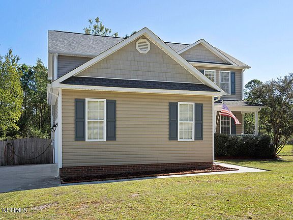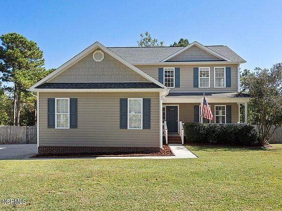 This home is conveniently located off HWY 210 in Sneads Ferry within minutes from all three schools (elementary, middle, and high) shopping, Restaurants, MARSOC, Camp Lejeune, and Top Sail Island! Talk about LOCATION, LOCATION, LOCATION! This 3-bedroom, 2 story home not only features a ground level master bedroom which has a dual vanity sink, jetted soaking tub along with a huge walk in closet, but also TWO ADDITIONAL BONUS ROOMS. The downstairs open floor plan features a spacious kitchen with Stainless-Steel appliances, a beautiful great room with a gas fireplace. New Luxury Vinyl Plank Flooring on first floor throughout the main living areas. Upstairs are two bedrooms and 2 EXTRA BONUS Rooms which all offer plenty of space for a growing or established family (or those guests coming to enjoy the beaches. Enjoy entertaining in the evenings in your fenced in back yard on the huge, beautiful back deck. This house has plenty of curb appeal with its welcoming front porch and side load 2 car garage. Come and see it for yourself, it won't last long! Contact me today and let me help you ''Unlock the Possibilities'' of owning this beautiful home.