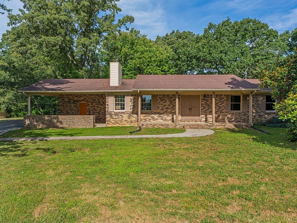 Nice brick home situated on 15 private acres with easy access to town. Home features approx. 1368 SF of unfinished basement consisting of shop, garage, and potential living area. Unique orchard stone fireplace in living room. Den boasts beautiful hardwood flooring. White kitchen cabinets. Patio features a primitive outdoor kitchen. 2 car attached carport. Pond. New central heat/air. Detached shop. Well water. Storage building on property. Above ground pool as-is. There will be a maintenance driveway easement between the purchaser of the home and adjoining property owners. *House and 10 acres offered at $339,900 MLS#2772208
