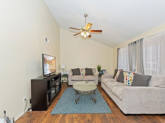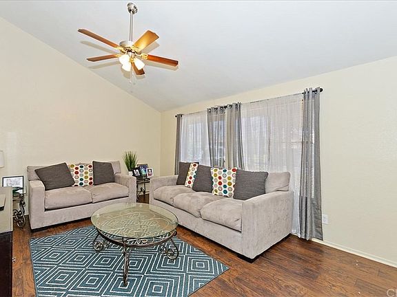 Single story rialto home. 3 bedroom, 2 bath home features a vaulted ceiling living room. Laminate flooring leads you to a large dining room with tiled fireplace. Vaulted ceiling kitchen with tile flooring. Master suite with attached master bath. Large backyard.