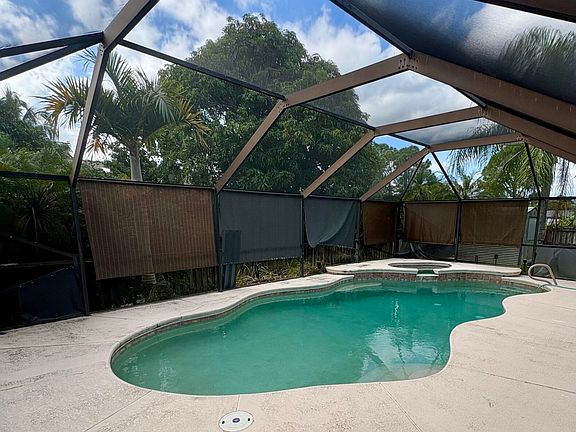 Buyer Opportunity to own a Private Pool & Hot Tub with good bones and open to updates! Priced for potential New Roof before closing with an acceptable offer. This home offers a fully fenced back yard, screened lanai, updated exterior paint, a split floor plan of 3 bedrooms, 2 full baths & 2 Car Functioning Garage that is displayed as a media room w/ a mini split to keep cool. Featuring Vaulted Ceilings, tile & wood laminate floors, dining & sitting rooms upfront and then continues with an open kitchen/family room layout w/ a cozy wood burning Fireplace. Updated Primary En Suite Bathroom w/ large shower & Frigidaire SS Appliances add modern touches to this traditional home. Pool Pump & AC have been Updated & newer HWH 2024!