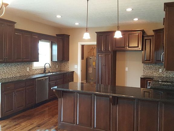 New all brick home on 1.63 acres- custom cabinetry- granite tops in kitchen and baths- real hardwood flooring- tile- 9 ft ceilings- 2 car garage- 56x8 front porch w/stamped concrete- 12x24 stamped concrete patio- cabinets in utility-2x6 exterior walls!
