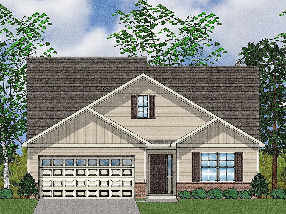 This Gwinnett plan is under construction and will be completed by August. This home features a spacious open floorplan, luxury vinyl plank flooring throughout common areas, bench and cubbies at garage entry, a boxed ceiling in the family room, and a covered porch with two fans. The primary bedroom is extended and features two walk-in closets and a ceiling fan! There is also a bedroom and full bath upstairs. The kitchen has stainless steel appliances, gas range, and granite countertops.