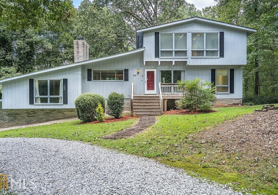 This sprawling 3600 sq ft home features a unique contemporary style and offers 3 beds, office/4th bed, 3.5 baths, and tons of storage space! Situated on 2.5 serene acres with a creek in Madison Co, it offers the best of both worlds of privacy & convenience with a 15 min drive to I-85 or downtown Athens. The multilevel design offers a creative layout combining open & intimate spaces that meander between levels & highlight cool architectural features, including vaulted ceilings with exposed wood beams, floating stairs, brickwork, wood paneling, & huge windows displaying views of the beautifully wooded property. The architectural shingle roof has recently been replaced, & NEW CARPET AND PAINT throughout!