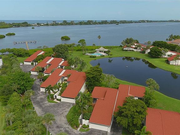 LIVE THE FLORIDA DREAM! Enjoy sunsets every night over Little Sarasota Bay after a dip in your heated waterfront pool and keep your BOAT IN THE BACKYARD! The Heron Bay Club is a friendly and intimate bay front community consisting of only 25 MAINTENANCE-FREE VILLAS nestled on 10 acres of manicured grounds surrounding a picturesque center lake complete with fountain. Amenities include a heated swimming pool, tennis, kayak launch, fishing pier and docks with water/electric. There are 10 FREE BOAT SLIPS WITH NO FIXED BRIDGES TO THE GULF OF MEXICO! Slips available as of this writing so BRING YOUR BOAT NOW! This rarely available 3 bed / 2 bath / 2 car garage villa home features views of LITTLE SARASOTA BAY AND THE INTERCOASTAL. The spacious OPEN CONCEPT FLOOR PLAN features 15 HIGH VAULTED CIELINGS, an EXPANSIVE 33 x 11 SCREENED LANAI, and a UNIQUE AND STUNNING PRIVATE, GATED ENTRY, COURTYARD that measures 50 x 14. This exquisite space has ENDLESS POSSIBILITIES perhaps you would like a small garden, pet area (1 pet of any size allowed here), or additional entertaining space. The open kitchen has rich wood cabinets and an eat-in kitchen area that overlooks the courtyard area. The master bedroom has sliders which open to the lanai and has an ample 8 x 7 walk-in closet. The second bedroom also features sliders that open to the private courtyard and a separate covered lanai area. Just 6 minutes to Spanish Point Tiki Bar & The Point waterfront restaurant, 10 minutes to Nokomis Public Beach, 20 minutes to downtown Venice, 25 minutes to Downtown Sarasota. Quick and easy access to I-75, shopping, and much more. This beautiful maintenance-free villa home awaits and is an ABSOLUTE MUST SEE!