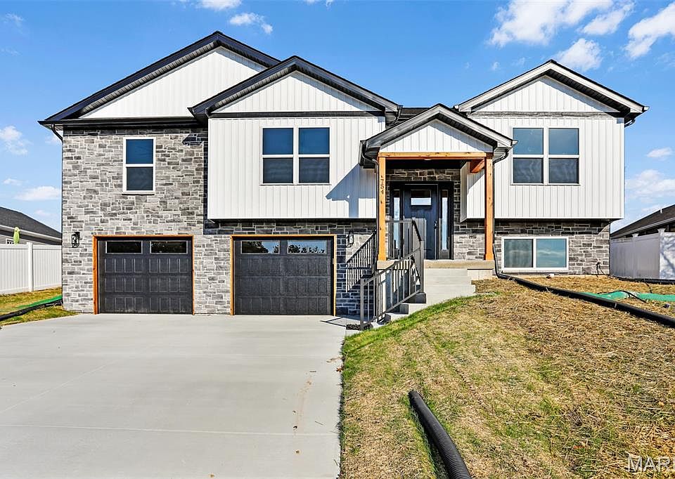Nestled at 754 Shady Grove DR, Washington MO 63090, this single-family residence awaits. Constructed in 2025, it offers modern living and a fresh start. This property presents an exceptional opportunity to own a newly built home in a desirable location of Walnut Ridge Park subdivision. Features inclued 1460 square feet, open floor plan with vaulted ceilings, ceiling fans in all the bedrooms and great room, waterproof laminate floors through the main floor and master bedroom, carpet in 2 bedrooms, modern white soft close cabinets with granite countertops, stainless steel single tub sink, built in microwave and dishwasher, recessed lighting, sliding glass door leads out to a 12 x 12 covered patio with exterior ceiling fan, spacious master bedroom boasts a double vanity and walk in closet, neutral decor in greys, white and black throughout the inside, extra large 2 car garage measures 27'6 x 26'6" and exterior stone veneer. Unfinished lower level is plumbed for a full bathroom and there's more opportunity to finish another room for an office, bedroom or recreation room. Don't wait to check out this great opportunity to own a new home without all the fuss, call today for your appointment.