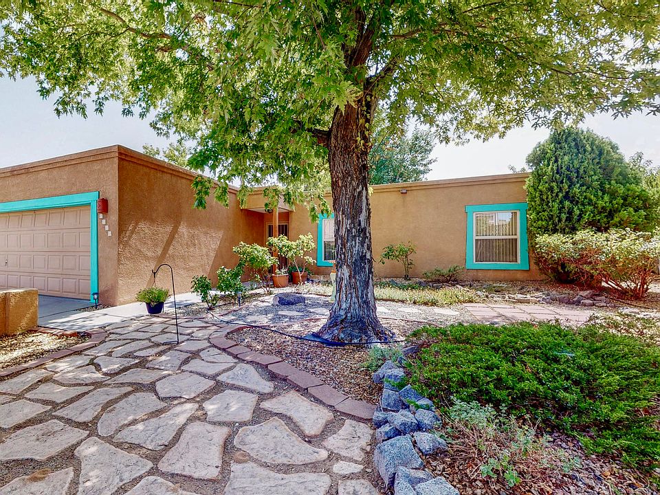 A true Taylor Ranch gem offering tranquility and a touch of Southwest charm awaits its new owner. The front courtyard, adorned with mature trees, provides an inviting entry and space to relax. The kitchen is sure to please with its ample amount of storage, built-in laptop station, SS appliances and breakfast nook. Gleaming laminate floors provide an understated elegance & warmth, and flow seamlessly through the formal dining room which is conveniently open to a sitting/flex room and the adjoining step-down living room with a large stone fireplace; perfect for those winter nights! The spacious Master Suite, with full bathroom, features a sizable added room w/backyard access which could easily function as an office, home gym, or nursery. The backyard is a lush paradise with covered patio,