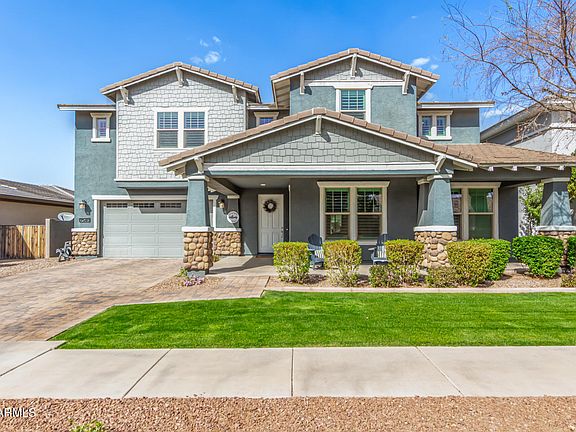 Welcome to your dream home! It's sweet curb appeal boasts a luscious green yard & paver driveway leading to an open 3-car garage. Wow guests with a grand entrance to an opulent foyer complete with statement staircase. Next, you'll find wood-look tile floors paired with neutral paint, elegant light fixtures, and plantation shutters in all the right places. The family room merges the indoor/outdoor space with its vast glass sliding doors overlooking the pristine pool with travertine and relaxing waterfalls! The kitchen boasts SS appliances, sleek quartz counters, shaker cabinets, a large breakfast island PLUS a butler's pantry. Upstairs, you'll find bedrooms & a huge loft for entertaining! Owner's suite has a lavish bathroom with two vanities, rain shower, soaking tub, & walk-in closet. Do not miss out on the flexible den, powder room, storage area underneath the staircase, and mudroom. The oasis-style backyard features green grass, a covered patio, and a sparkling blue pool. This home is sure to sell fast!