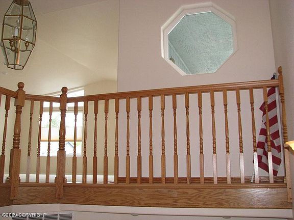 Beautiful bright & clean prow-front home. Vaulted ceiling. Lovely custom oak staircase. Master BR w/full bath & another BR & full bath up. Large entry, 2 BR & full bath down, family rm, w/access to sunny west facing fenced back yard, w/3 may trees & storage shed! Lots of BI storage in the 2 car garage. Fireplace in LR. Walk through kitchen w/peninsula countertop & pantry.