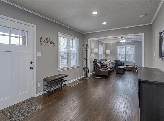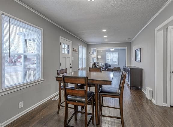 Beautifully remodeled home near downtown Overland Park. Gorgeous granite kitchen with stainless steel appliances and newer cabinets. Spacious great room opens to dining room. Large fenced backyard with deck - ideal for entertaining. One car attached garage with an additional 2 car detached garage with room for possible 3rd car or workshop and stand alone 20x10 Tough Shed with electricity. Most of the updates have been done within the last 6 years; electrical, windows, roof, HVAC, hardwood floors, bathroom and siding. Minutes to amazing eateries (Strang Hall), awesome Farmer's Market, Matt Ross Community Center, Thompson Park, shopping and night life.