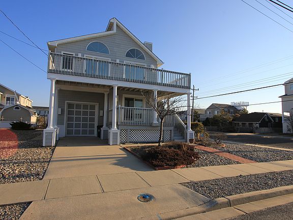 Fabulous value located two blocks from excellent beach with a view of the bay and sunsets. Two story, upside down style home upgraded with wide plank, stained oak floors throughout the first floor. The entry foyer is expansive and bright. First floor family room is spacious and has immediate access to a large covered deck. Both first floor bedrooms are generous & share a hall bath. The open staircase leads to a sunshine filled, vaulted great room with operating high windows and skylight. The great room faces south and takes full advantage of the sun and prevailing southern breezes. The floors in the great room are beautiful tile. The kitchen has granite tops, tile back splash & all stainless steel GE appliances. The main sundeck off the great room is expansive and affords sunset and bay views. The second floor features another bedroom; hall bath, generous master bedroom with ensuite bath and dressing area. The home is sold tastefully furnished with ample rear yard for a pool. The family looking to be close to the beach with immediate access to fine dining, quality night life, tennis, basketball, ball field and a stroll to Stone Harbors' shopping area, will find this home be very comfortable and convenient.