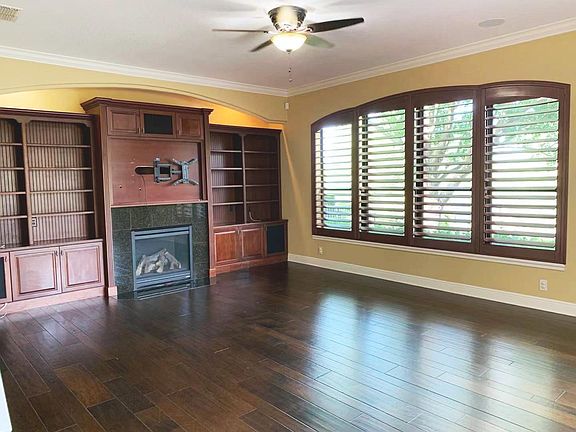 Gas fireplaceGranite countertopsBonus room upstairsWrought ironCustom built-insMultiple upgradesWood and travertine floors