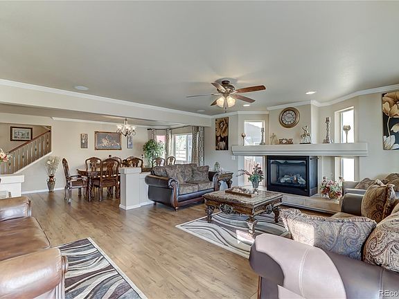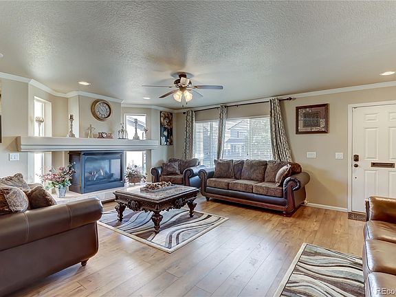 What a Beautiful Home! This immaculate and spacious abode with an open floor plan has many upgrades. The main level boast wood floors in the living room with a fireplace, dining room, kitchen and big family room which is located near the kitchen. Move on into your gourmet kitchen with granite countertops, stainless steel appliances, double oven, gas stove, island, eating area and a walk-in pantry. You have a separate Formal Dining room with a bay window. The main floor also has a study/office. Surround sound/Multi Media Speaker throughout home. Coffered Ceiling with Crown Molding design. Double doors open up into a large master bedroom with a walk-in closet and a 5 piece bathroom. Also, upstairs is a loft with a wet bar. The basement is fully finished with a bedroom, bathroom and family room or work out/entertainment area. Located in Cul-de-Sac and has one of the largest backyards in the neighborhood and also comes with 2 furnaces and 2 ac units. Close to shopping, schools, restaurants, parks and Peterson AFB. Come See this Gorgeous Home!