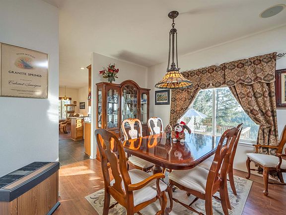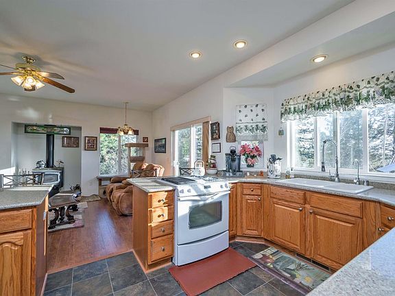 2003 Custom built home on over 5 gentle acres WITH VIEW! Great internet service available. First time on the market. Kitchen has Silestone counters, electric convection oven and gas cook top with grill and downdraft, newer dishwasher and under counter lights, newer vinyl flooring. The master suite has a heated/jetted tub, shower stall, walk in closet and outside access. Window coverings are top down, bottom up. The garage is insulated, sheetrocked, taped, painted some benches and cabinets will stay. Automobile rack negotiable. Good storage under the house too, insulated and partially sheetrocked. Whole house fan. Whole house generator. 500 gallon propane tank owned. Kinetico water softener included. Two RV hookups 30 AMP. Newly poured concrete driveway and walkways.