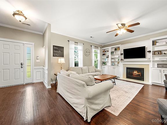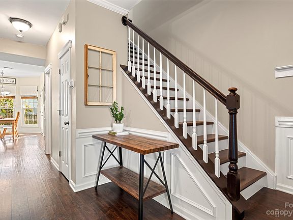 Welcome to 7540 Sparkleberry Dr, nestled in the desirable Holly Park neighborhood on a cul-de-sac street. Do not miss this lovely home boasting custom built-ins in living room, updated kitchen with open shelving, stainless steel appliances, recently updated wood floors upstairs and down, fresh paint and more. The primary bedroom is your spa-like retreat with separate vanities, a soaking tub, and separate shower. Holly Park is prime location in Union county with easy access to dining, shopping, and Uptown Charlotte.