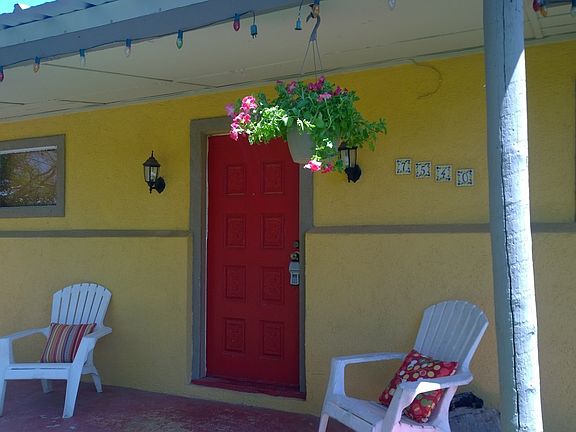 Here is your quiet get-away! Sit on your front porch and enjoy the chirping of birds and the gentle breeze. Then enjoy a good time inside that says "I'm onvacation This 2/1 (with jetted tub-shower combination), has room in the kitchen for an eat-in table, or you could just use the unique bar. In cooler weather you can cozy up to the wood-burning stove surrounded by decorative tile that sets the mood in your very own Casita. This is a must see. Near the lake, could also be great traditional rental or a "home away" weekend rental.
