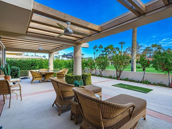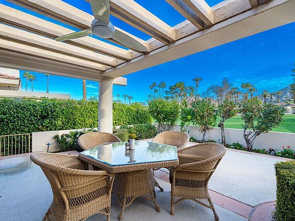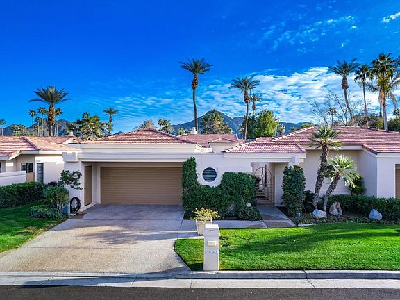 South facing, detailed & uniquely upgraded golf course home located right on the green fairway with breathtaking mountain views beyond! Sophisticated style throughout this charming home with numerous custom-quality touches, warm tones and creative uses of tile, granite and stone. Highlights of this immaculate entertaining home include paid solar system, newer AC systems, soaring ceilings, and views that bring the outside in through expansive picture windows. Open great room with stately fireplace & gourmet kitchen to please the most discerning chef with a custom kitchen appliances and rich wood cabinetry. Master Suite is a private retreat with walk-in closet, luxurious spa-style bath and views revealed through the sliders and windows. Enjoy the Entertainer's dream patio with Views. Dramatic landscape lighting sets the tone for the cool and romantic Desert nights to come.