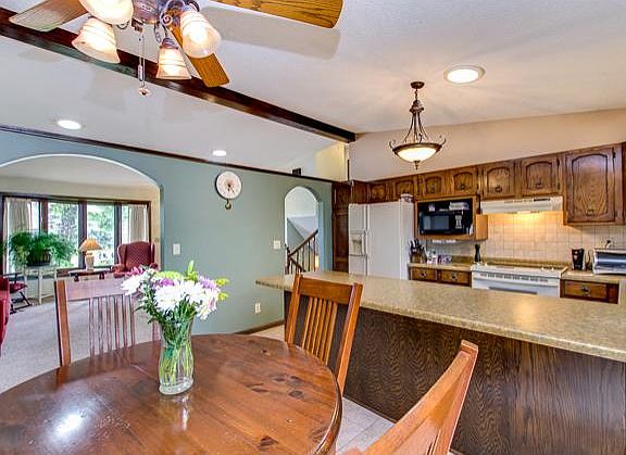 Welcome home, this unique house is a 2/2/3+ with no association fee and laundry on the main level. You could add lower level bedroom. Owner has taken great care of home including new garage doors, and sump pump this summer. There is a one of a kind garage/shop 26xx28 with tall doors in the cozy backyard surrounded by beautiful gardens and flowers.
