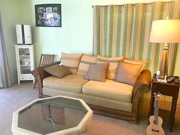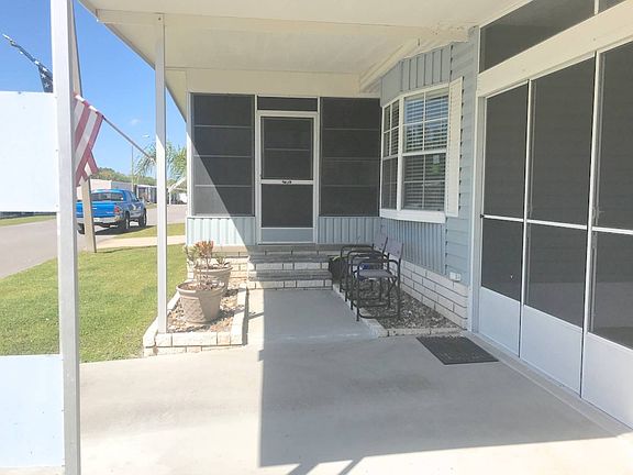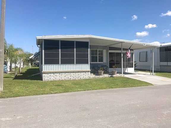 This 2 Bedroom, 2 Bathroom Home is approximately 1100 square feet, PARTIALLY FURNISHED WITH A BRAND NEW MEMBRANE ROOF-OVER in a Gated Community! The Roof has a transferrable warranty for 14 years depending on purchase, the AC is regularly serviced, the home is regularly sprayed for pests, the carpet in the Living Room and both bedrooms are a year old, the other flooring is bamboo throughout the home and the Hot Water Heater is New. The AC has been regularly serviced and is in good condition and there is a wonderful Patio in the back with shrubs and flowers around the home. The Living Room is a spacious area which will have the beautiful couch, coffee table and reclining chair for your relaxing pleasure. The Breakfast Nook is as you enter the home with a built-in table, a tiffany style lamp above and this is a nice informal area. The Kitchen has a stove and built-in microwave above, refrigerator and dishwasher. There is plenty of cabinets and counterspace for cooking. The Formal Dining Room has a nice overhanging lamp, built-in china cabinet and has a Beautiful Bay Window bringing in the Florida sunshine. The Florida Room is Enclosed or you can Open the Windows and enjoy the Gulf Breeze as you sit on your occasional chairs with a table. The Master Bedroom can fit a king-size bed, has a Large Walk-in Closet and is waiting for more decorations. The Master Bathroom has a 1-sink vanity, toilet with a lovely cabinet above and a Walk-in Shower with a sitting space. The Guest Bedroom has a lovely daybed, which is like new, a Walk-in Closet and can fit a queen-size bed. This is a wonderful space on the backside of the home. The Guest Bathroom has a 1-sink vanity, toilet, bathtub/shower and a wall of cabinets for storing your linens and bathroom accessories. The Carport has double screened sliding doors which allows you to drive a golf cart, large motorcycle, etc. in to store in a very Large Screened-in Patio. This area also has a Shed with plenty of storage space, and washer and dryer, which is negotiable with the home. There is also a Lovely Patio behind the Home. THIS IS A LOVELY HOME AND IS NOT GOING TO LAST LONG AT THIS PRICE! THE LOT RENT WITH WATER, SEWER, LAWN SERVICE AND TRASH COMES TO $656 A MONTH. HACIENDA VILLAGE IS A 55-PLUS GATED COMMUNITY, AMENITIES INCLUDE A SWIMMING POOL, SHUFFLEBOARD, CLUBHOUSE, HORSESHOES AND MUCH MORE. PET FRIENDLY - 2 PETS UNDER 35 LBS. COME ENJOY THE FUN AT HACIENDA VILLAGE. ----------------------------- Cash Only -----------------------------