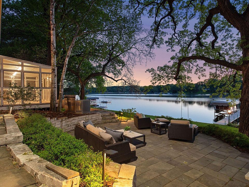 A wonderful 3-season porch & outdoor entertaining patio w/stone FP – perfect for hosting parties/serene ambiance. West facing views to enjoy gorgeous sunsets over the lake. The level lakeshore – great for swimming, fishing, boating or relaxing by the water’s edge. Truly a special & desirable property.