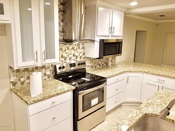 Newly updated private home on a quiet street with a large lot. Boasts an open eat-in gourmet kitchen with a custom design. Features a large island, stylish peninsula, luxurious granite countertops, shaker style cabinets, recessed lights, new SS appliances, built in microwave, crown molding with huge pantry for storage! Double vanity in master. Has a modern open floor plan design with oversized living and dining room combo. Includes a closed in porch/ sunroom, new tile floors, new carpet, laundry room, spacious driveway, new windows, architectural roof shingles, ceiling fans, fixtures, and new paint. Kitchen and bathrooms updated. Perfect location. Close to expressway, airport, shops, and restaurants! Home Warranty offered.
