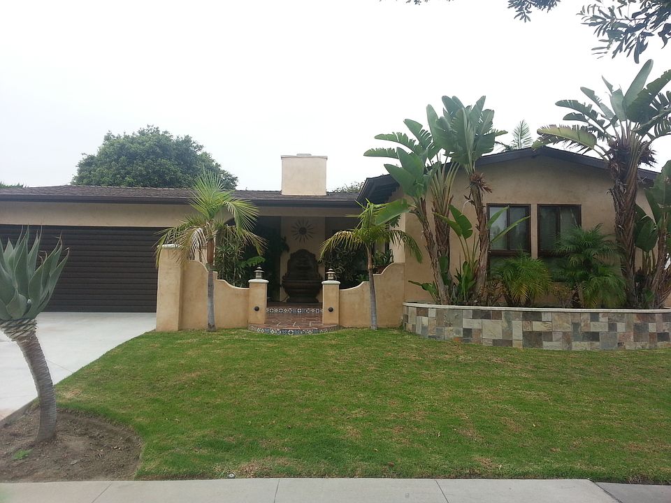 Santa Fe style at the beach! Gorgeous curb appeal with complete exterior remodel, including custom stucco finish, stone faced planters and lush landscape. Enclosed entry courtyard will WOW your guests with Saltillo tile, soothing fountain and beautiful architectural detailing. Separate entrance foyer opens to huge great room with lovely fireplace and floor to ceiling windows that view courtyard. Separate dining area is the perfect place for family meals or entertaining and has view to rear yard. Designer kitchen is another WOW with customized rich wood cabinetry, stone counters and backsplash, and stainless appliances. Double doors lead to the master suite with large bedroom, bath with dual-sink vanity and oversized shower, plus gigantic walk-in closet. Secondary bedrooms have custom closets and beautiful molding detailing. Updated second bath sparkles with decorator paint and accents. Refinished hardwood floors throughout, custom ceiling texture, recessed lighting, dual pane windows, brand new roof and much more! Private rear yard is the perfect entertainer?s paradise with huge stone patio, large grassy yard and mature plantings all around. Fantastic neighborhood is walking distance to school, park and Bella Terra Shopping and Entertainment Center.