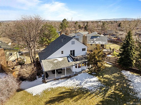 Welcome to this outdoor oasis with 4 bedrooms and 3 bathrooms, nestled in Columbine West. You will instantly be captivated by the stunning mountain views visible from the upper deck and backyard. The appeal of this home carries over to the rest of the exterior, which boasts a brand new roof, siding, and exterior paint ($30k+) -- including the porch and deck. The main level porch is spacious and covered. The balcony is accessed through an upstairs bedroom, where you can see the mountains and firework shows. Situated on a quiet cul-de-sac, this residence offers a large 1/3 acre lot with mature trees, garden area, and privacy fencing, providing ample space for outdoor activities and creating an idyllic backyard retreat (playset included). Whether you want to bask in the sunshine, enjoy a BBQ with friends and family, or simply take in the mountain backdrop, this property offers endless possibilities for outdoor enjoyment. Upon entering this home, you will be greeted by hard floors throughout the main level, adding both style and durability to your living space. The interior of this home has been updated with paint throughout, offering a modern and inviting atmosphere. The living room has a cozy ambience provided by the wood fireplace, perfect for those chilly Colorado nights. The sunroom is an added bonus! The partially finished basement has drywall and rough-in plumbing for your convenience. This provides endless potential for customized expansion, additional living space, or even a creative home office. The unfinished portion allows you to bring your own vision to life and design a basement that perfectly fits your needs. Located in Littleton, this home offers a prime location within close proximity to schools, shopping centers, parks, and all the amenities one might need. With its breathtaking mountain views, impressive exterior updates, spacious lot, wood fireplace, hardwood floors, updated paint, and versatile basement, this property is ready to be your new home.