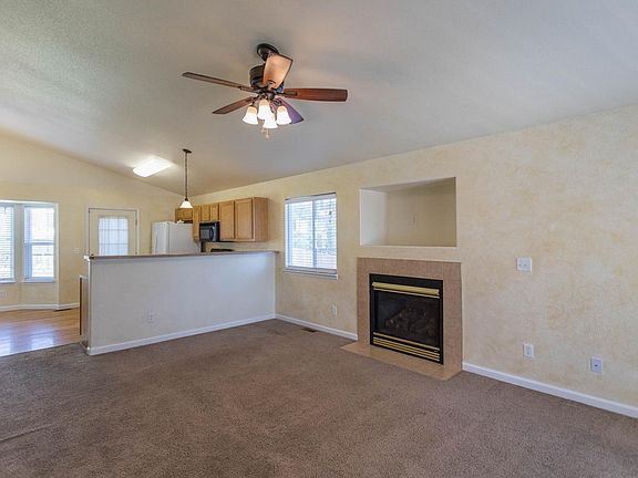 This charming ranch home is located minutes from shopping and Ft Carson AFB* As you step inside, you will notice the cathedral ceilings and open floor plan* The Living Room has a large bay window and a cozy gas fireplace with built-in entertainment niche above* The spacious Kitchen features ample cabinet and countertops space, beautiful wood floors, and a walk-out to the backyard* The Dining Room features a 2nd Bay window that allows natural light to pour into the home* The Master Bedroom features a two-tone paint with chair rail, ceiling fan, and adjoining full Bath* There is also an additional Bedroom on the main level* The finished basement has a spacious Family room, two additional Bedrooms, 3/4 Bath, and large Storage Room* This home has central air for those hot summer day* The Backyard has a large concrete patio with mature trees*