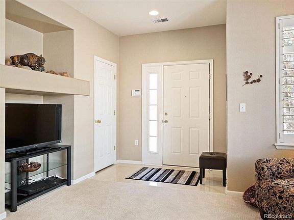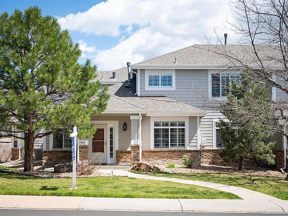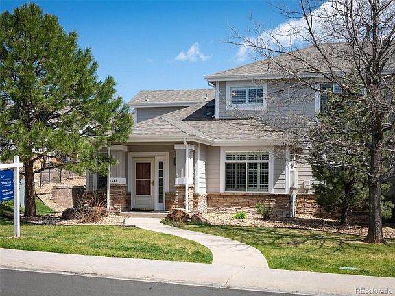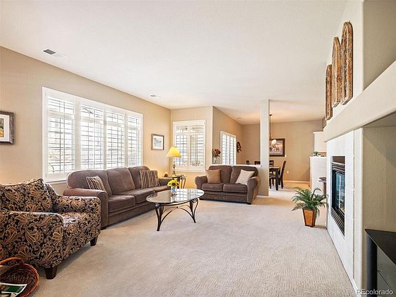 The highly sought-after Pineridge community of Castle Pines is a perfect worry free community. Adjacent to the Ridge Golf Course, this turn key property promotes an active lifestyle. The interior location is super quiet and provides security. This meticulously maintained residence boasts a open floor plan as well. As you enter, notice a wonderful gas fireplace, Plantation shutters, and quiet side patio. The kitchen is equipped with all you need and features two large pantries and lots of storage. The adjacent laundry room, which also doubles as a convenient mudroom, comes complete with a utility sink, shelving, and a coat closet. The dining area is open and inviting with room for an ample sized table for 6 guests. The main floor hosts a second bedroom with a walk-in closet and a lovely bathroom. Additionally, there's a versatile office that can easily double as a third bedroom with built in features. Ascend to the upper level, where the spacious Master Suite awaits. This retreat includes two large walk-in closets and a master bath with two sinks and a walk-in shower. The property comes complete with a newer hot water heater and HVAC system that was upgraded in 2016. Exterior maintenance is effortlessly managed by the HOA, which replaced the roof in 2020 and is currently re-landscaping and painting the exteriors of all buildings. A small area in the front and a private side patio (with stamped concrete) off the kitchen provide perfect spaces for gardening and outdoor relaxation. Enjoy the breathtaking views of Pikes Peak and Castle Rock from this quiet community overlooking Daniels Park. With a few minor updates, this home serves as a long term residence that will be a sanctuary for any resident to enjoy worry free living. Easy access to I-25 and nearby shopping, this property embodies the perfect harmony of comfort, convenience, and community.