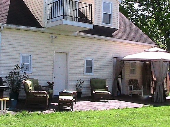 open house for July 6th is cancelled due to sale pending. Quiet neighborhood. Great neighbors Recently remodeled kitchen with beautiful blonde hardwood cabinets custom made by Amish craftsmen. Both bathrooms have been recently updated. Attached garage well insulated with newer insulated 16' roll-up door. Large storage room (possible bedroom) above garage with walk-in closet and sm balcony that over looks the back yard Most of the first floor walls are covered with pine tongue & groove wood. Dry basement with laundry room. Newer high efficiency gas furnace and hot water heater. Chain link fenced in area 30' Long x 34' wide x 6' high for dog kennel or safe child play area.