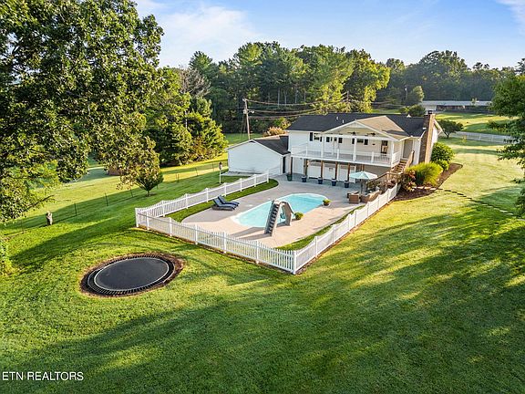 4.36 of pristine rolling acres! Welcome home to 7543 Majors Rd. This picturesque country home features 4 bedrooms and 2.5 bathrooms with 2500 sq ft of living space. The upper level includes a spacious open floor plan, showcasing newly installed engineered flooring and a fresh coat of neutral paint throughout the entire home! Enjoy your evenings hosting parties on the mainly covered back porch, which runs the entire length of the house, overlooking the beautiful inground pool, barn and scenic views of the mountains! Take note of the sunsets as they fall over the tree line every single night! The lower level includes a spacious laundry room/bathroom combo which could be converted into a full bathroom. Take note of the stunning farmhouse sink and marble countertop. Along with two very spacious flex rooms! The left room comes with a beautifully updated wood burning fireplace and the other includes additional storage and access to both the outdoors and garage. The outdoor space is full of so many opportunities for entertainment! Kick back by the pool or take a plunge down the water slide! Don't feel like swimming? Take a jump on the built in trampoline, perfect for kids of all ages. A beautiful white picket fence encloses the pool area for extra piece of mind. Once the sun sets, gather around the built in stone firepit spacious enough for ample seating. Have dreams of owning chickens and horses? Well, here it is! Located in the back yard is a large metal barn with the option of two stalls. Let your pets roam freely in this cleared, but fully fenced in, yard. For added security, the home can only be access by the solar powered front gate! Enjoy the peace and quiet in this country setting but still within a 30 minute drive to downtown knoxville! Close proximity to everyday conveniences, including groceries and shopping. Easy commute to hiking trails and lake access, or a trip to the smokies.