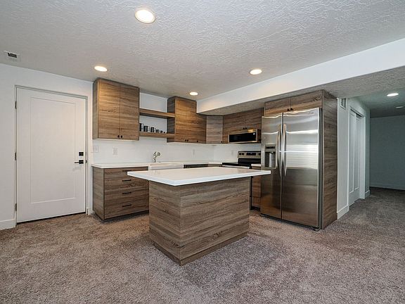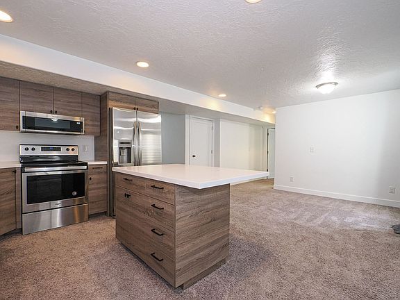 Eagle Mountain basement with separate entrance. 1 bedroom & 1 bathroom. Nice sized great room with vinyl wood flooring and kitchen with solid surface countertops, rustic brown cabinets, and stainless steel appliances to finish it off! Easy access to walking trails. Male dogs must be neutered.