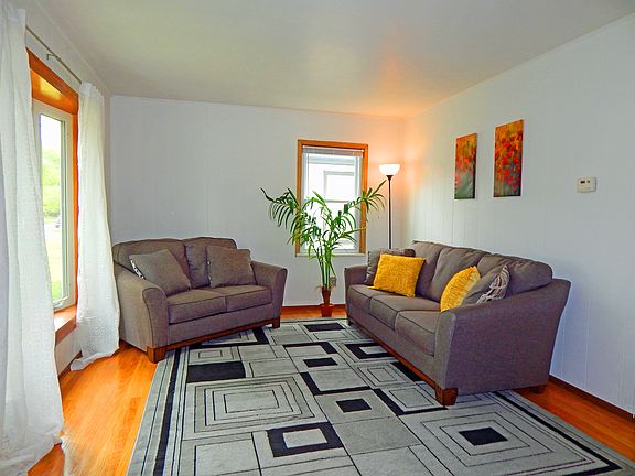 Cute and cozy maintenance free home. This home features hardwood floors and updated bath, basement is partially finished. Large yard with additional parking next to garage. Grants are available ask for more details.