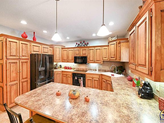 This 5 BR, 3.5 BA, 1.5 story in Washburn rural features two see thru fireplaces, den off the MBR, new roof, gutters & exterior paint, 3 car garage & lots of generous room sizes. Lawn has patio & sprinkler system. Shows well.