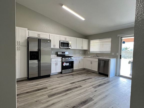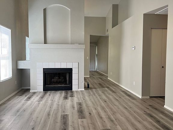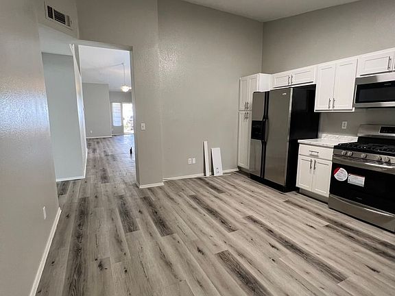 Cute 3 bedroom with plank flooring, newer cabinets and counters, painted neutral colors, stainless appliances, open and bright kitchen plus a formal dining room. There is a gas fireplace in the living/family room. Master suite has shower/tub combo and one of the guest bedrooms has a large walk-in closet. 2 car garage and low maintenance yards. Space and hook ups for your own washer and dryer in the garage. Walking distance to the elementary school and across the street from Hayes Park.