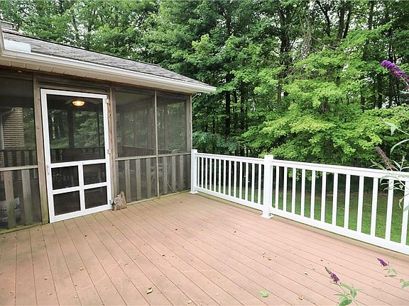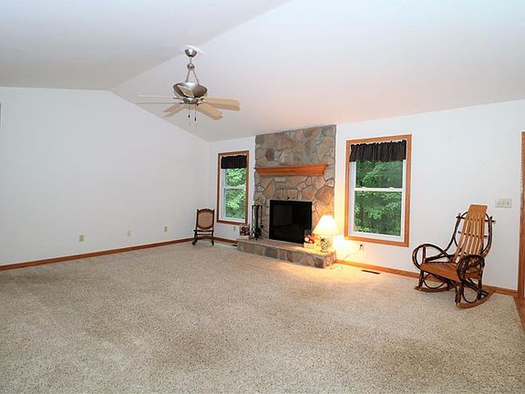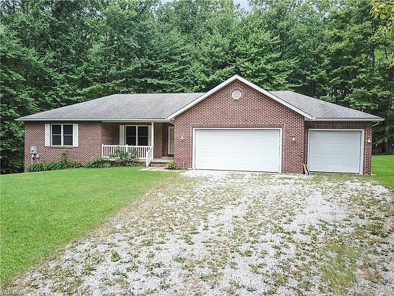 This quality built brick ranch home built by Zollinger Builders features 3 bedrooms, 2 full bathrooms a 4 car garage all on 8.4 secluded acres. As you enter you walk in to the large open concept floor plan. Living room features vaulted ceilings, a gas fireplace and freshly professionally cleaned carpets. The eat in kitchen area provides ample space for cooking and enteraining. The dining room leads you to a screened in porch and open deck overlooking the beautiful back deck. The Master bedroom has a ton of natural light and a large private bath with walk in shower. 2 more bedrooms and a full bath complete the first floor. The walk out basement has an extra course of block for extra tall ceilings, plumbed for a bathroom and ready to be finished. This home sits on a very private lot yet is minutes from the conveniences of town.