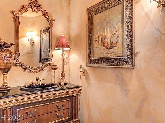 SPECTACULAR & INVITING One-of-a-kind 3 bedroom, 3 bath custom home on .55 Acres with converted detached three-car garage recording studio & room for RV parking Elegant and spacious Great Room with a vaulted ceiling that soars over custom white Italian marble flooring with beautiful herringbone design through main living area, wood-burning fireplace, and formal dining room with high polished marble floors. The Kitchen was designed to feel like a European sidewalk cafe complete with a cobblestone design floor that features a large skylight over the breakfast nook, tile island & countertops, interior awnings, & living room pass-through Marble, tile, and travertine flooring throughout The bedrooms and bathrooms. The very spacious and inviting Master Bedroom features marble floors and a STUNNING large one-of-a-kind oval dome sky in the center of the room Converted three-car detached garage with its own HVAC, electricity & water hook-ups So many luxurious features, this is a MUST SEE