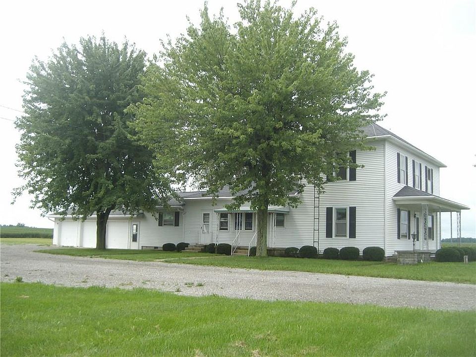 Large country home on 3 acre lot. Freshly painted interior. New carpet. 4 bedrooms; 1 1/2 baths. 24x36 3 car garage. Roof approximately 6 years old. Propane furnace approximately 12 years old. Added gravel in drive. Vinyl exterior. A 26x50 barn, 46x86 barn, and other outbuildings.